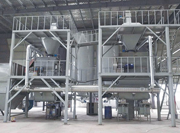 膩子粉生產線主要由原料儲存系統(tǒng),輸送系統(tǒng)、計量稱重配料系統(tǒng)、混合系統(tǒng)、氣動系統(tǒng)、除塵系統(tǒng)、包裝系統(tǒng)及自動控制系統(tǒng)...